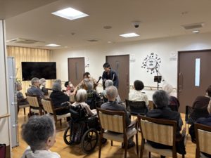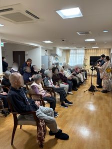 利用者様達の知っている曲や懐かしい曲など、一緒に歌ったり演奏を聴いたりと
