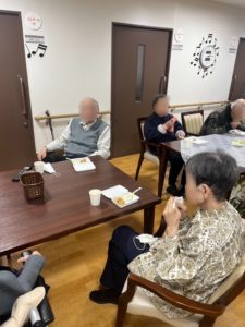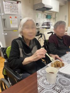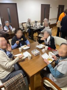 スタッフが焼いた出来立てのたこ焼きを利用者様に食べていただきました。