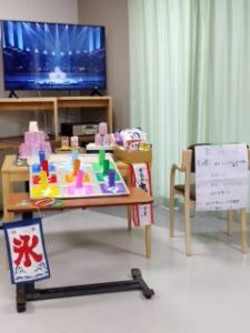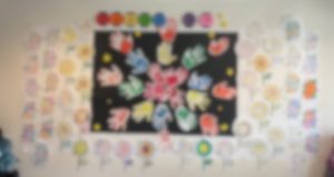 玄関には皆様の手形の花火が打ちあがり、色塗りして頂いた向日葵・朝顔が綺麗に咲き誇りました!!